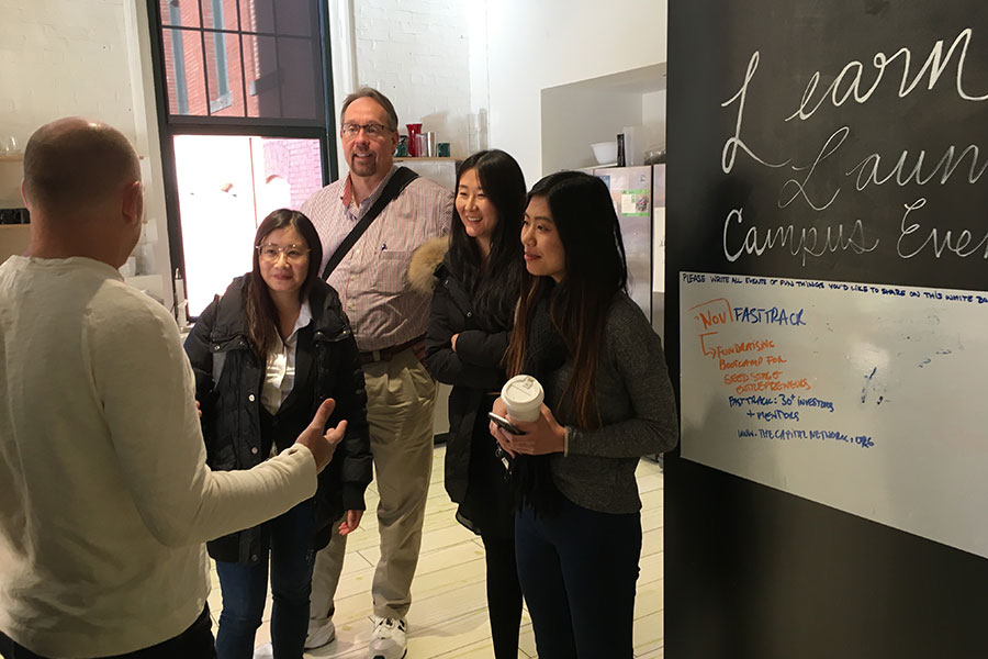 Warner School faculty and students had the unique opportunity to connect with two Boston-based edtech companies as part of the Learning in the Digital Age (LiDA) strategic initiative. In November, David Miller, assistant professor and director of the Warner School’s program in K-12 digitally-rich teaching, and five Warner PhD students met with teacher-turned-entrepreneur Dave Meyers, CEO and founder of TeachersConnect, and serial entrepreneur Jean Hammond, co-founder of LearnLaunch, in Boston, Mass.